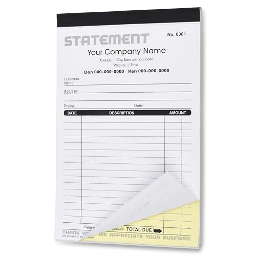 Generic Custom Statement - Personalized Duplicate Carbonless Form with Your Company Name - 2 Books (100 Sets) Numbered